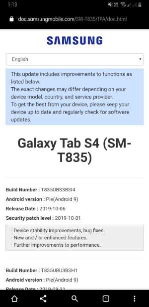 The new update for the Galaxy Tab S4 carries the build number T835UBS3BSI4 and is based on the Android 9 Pie. Moreover, it carries the security patch level 2019-10-01.