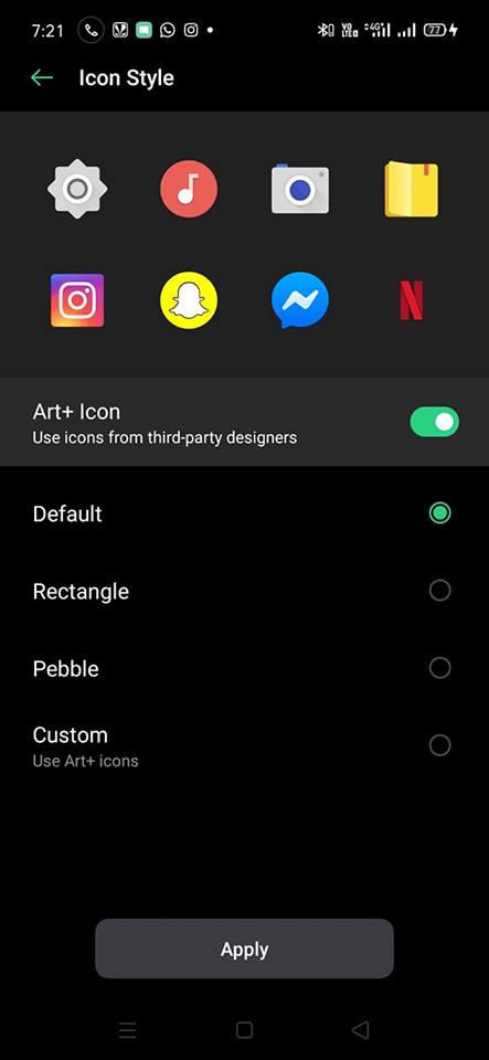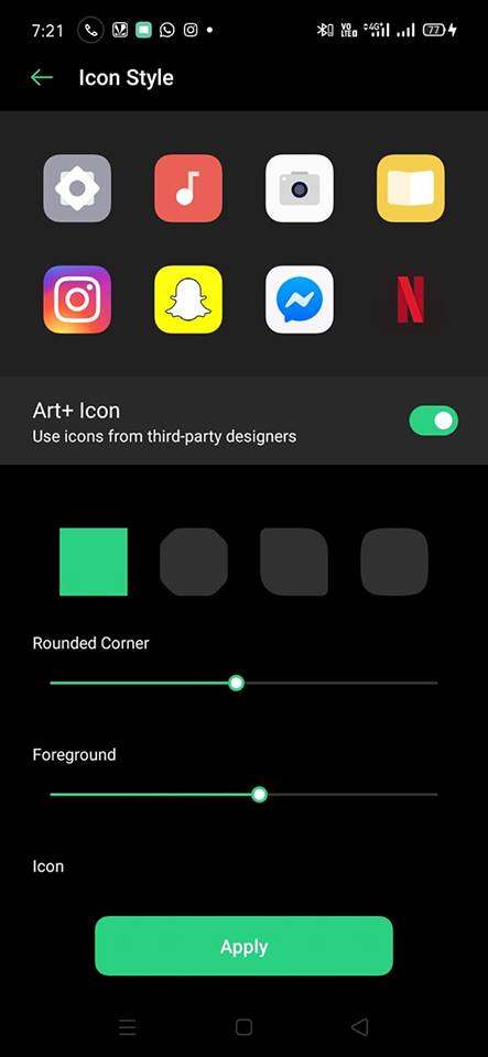 • Customize the size, shape, and style of app icons on the Home screen.