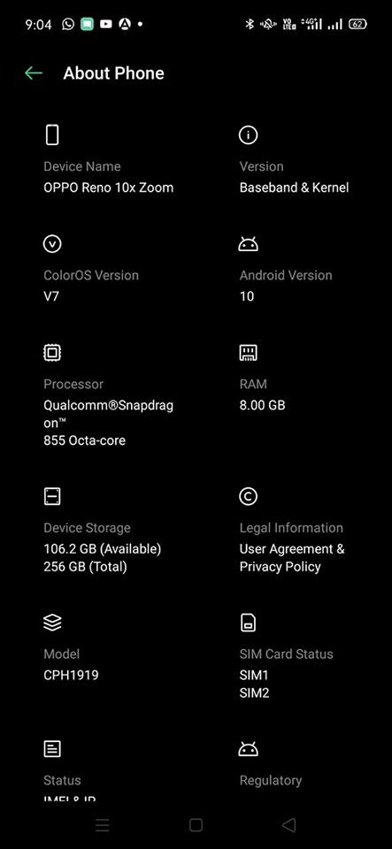 - Make sure that you running the latest versions on your OPPO Reno or Reno 10x Zoom smartphone.