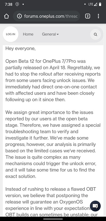 However, the latest Beta update for the OnePlus 7 and 7 Pro didn’t quite go well. This is because soon after the Open Beta 12 rolled out, users started complaining that their OnePlus devices would not unlock. A rather serious predicament to find yourself in. The update has since been pulled and you can read more about that here.