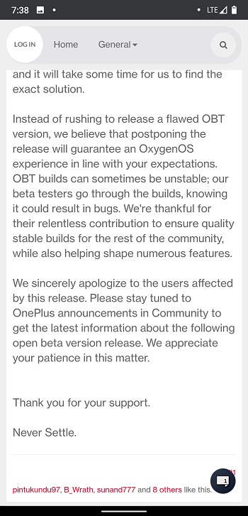 “Instead of rushing to release a flawed OBT version, we believe that postponing the release will guarantee an OxygenOS experience in line with your expectations.”