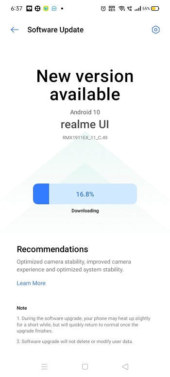 The update has already been spotted on all three devices; Realme 5, Realme 5i, and Realme 5s as the RMX1911EX_11_C.49, RMX1911EX_11_C.49 and RMX1925EX_11_C.49 respectively.