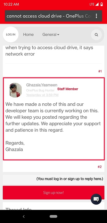 Some users have their devices indicating a Network Error while trying to access the Cloud Storage options on their OnePlus units. This, despite having a working internet connection.