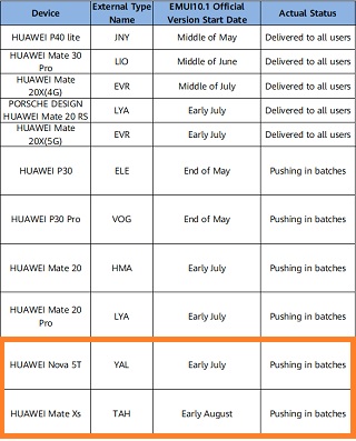 Also, the update is being rolled out to the Huawei Mate Xs and Nova 5T West European variants in batches meaning all users will get it in some time. However, owners of the Nova 5T in Russia and Central Asia will have to wait for a while.
