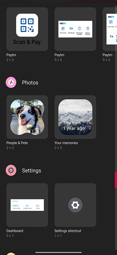 - Scroll down till you locate the Google Photos widget or use the search bar