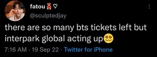 it’s general sales for the busan concert today but honestly i don’t even bother. you can expect nothing from global interpark when it comes to bts concert😩