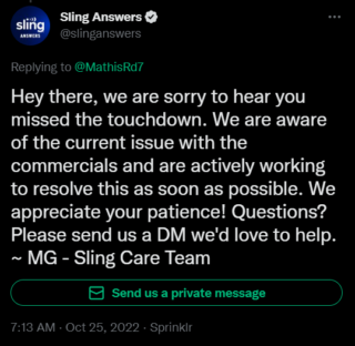 Some users have been reporting an issue where Sling TV starts playing commercials or ads during live TV shows and games.