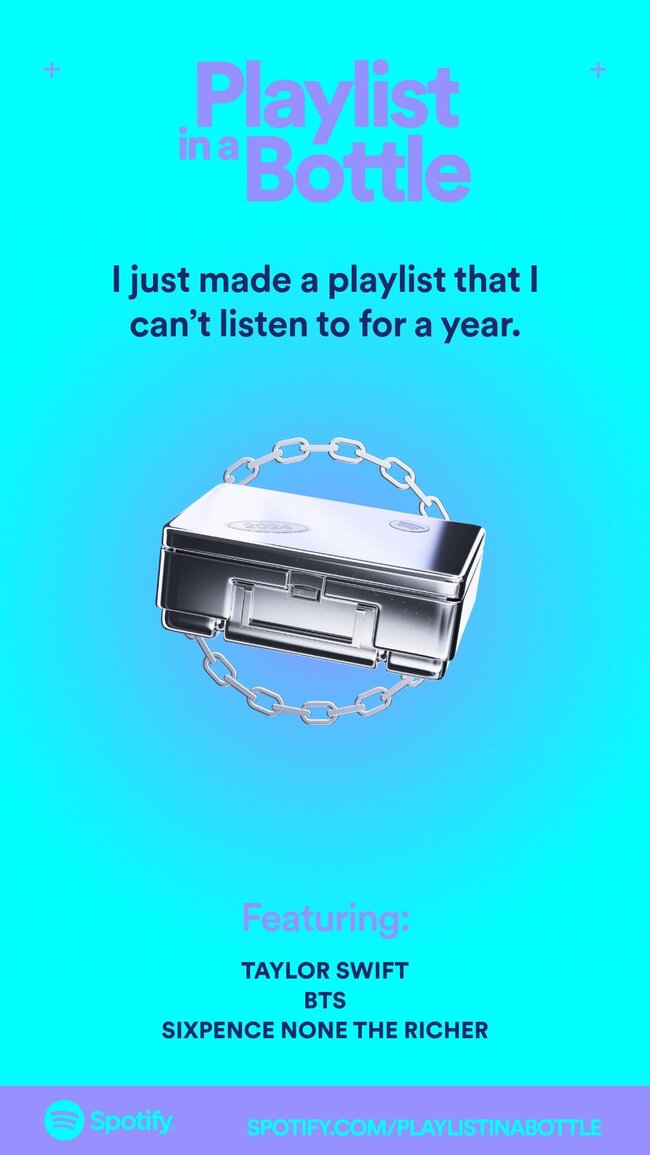 Now, the service looks to repeat the move with a new feature: Spotify Playlist in a Bottle. The option allows you to create a ‘musical time capsule’ that you will be able to listen to in 2024.