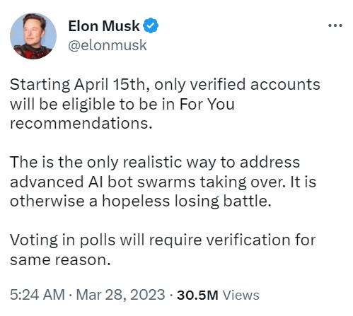 Apparently, this new update is being implemented to address the bot issue, and according to Musk, it is the only realistic way to tackle this situation.