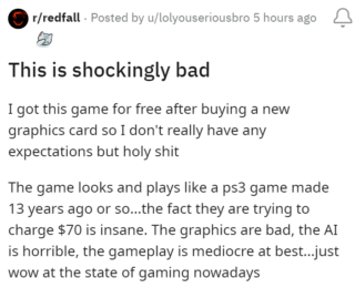 ACG, a respected YouTube content creator, calls it one of the worst games they’ve played in 2023. Fans of Arkane (the studio behind Redfall) are disappointed as they expected much more from the developers.