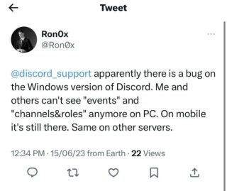 However, several reports suggest that the Events tab is currently missing or not showing up for a section of users. This issue has been reported by users on desktop and web versions of Discord. Here are some reports for reference: