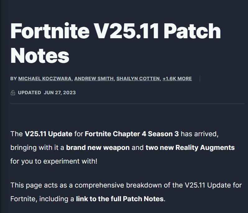 Epic Games has recently released the v25.11 update for Fortnite, which brings a brand new weapon, bug fixes, and two new Reality Augments.