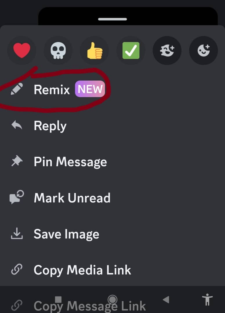 This feature does NOT replace the edit message button, as I saw some people wondering. This feature is not for videos, only images. You can remix before and after sending an image, but the remix won’t update the sent message it just sends a new one.