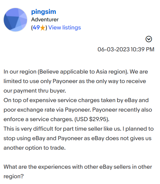 That said, the implication of the new Payoneer annual account fee can manifest in multiple ways. It may discourage new and smaller-scale eBay sellers from using the platform as their preferred payment platform.