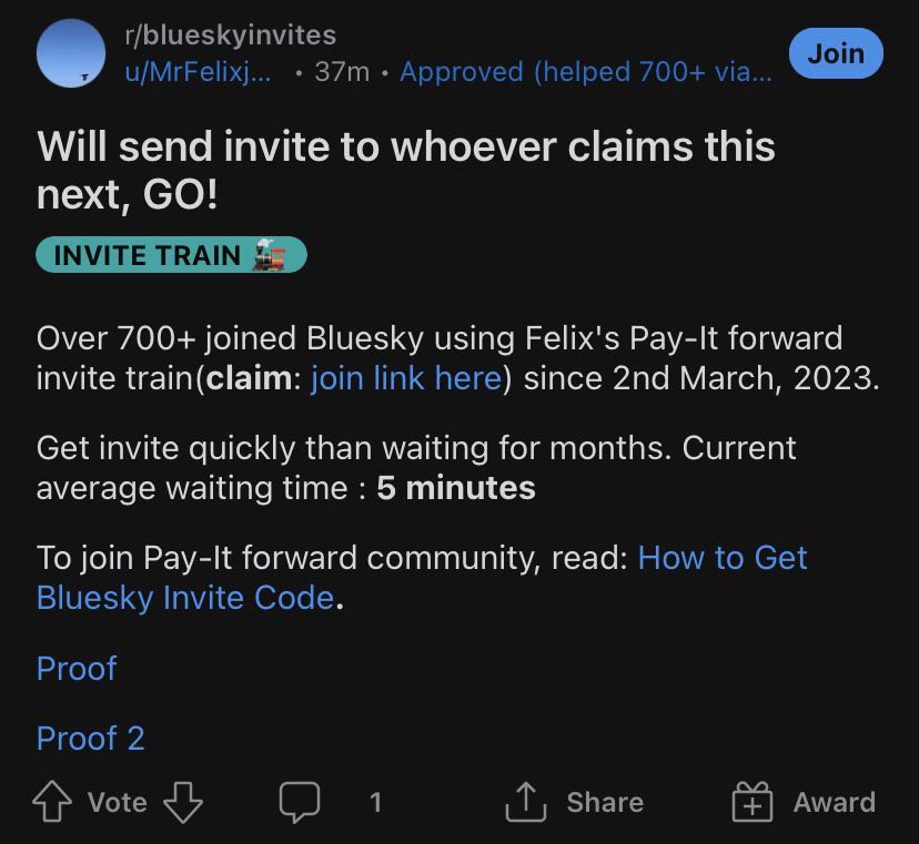 Especially with the new announcement from earlier about this app, I am once again asking if anyone has a bluesky invite code they can spare. (Source)