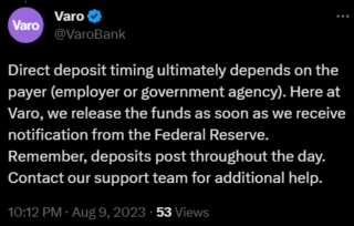 10:00 am (IST): Varo bank account holders are also reporting delayed direct deposits (1,2,3,4,5), similar to Chime bank users.