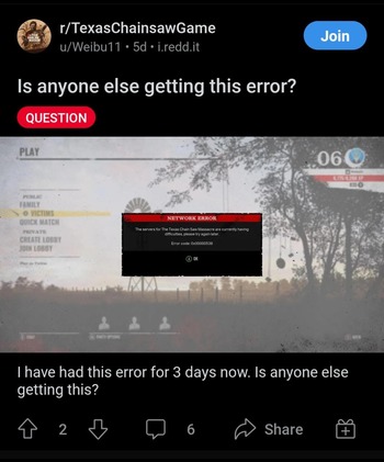Official acknowledgement for ‘network error’ in The Texas Chain Saw Massacre