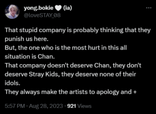 On May 17, Bang Chan went on Instagram to apologize for the offense caused by his comments. He said that it was not his intention to specify a certain artist in that it has nothing to do with the one being mentioned right now.