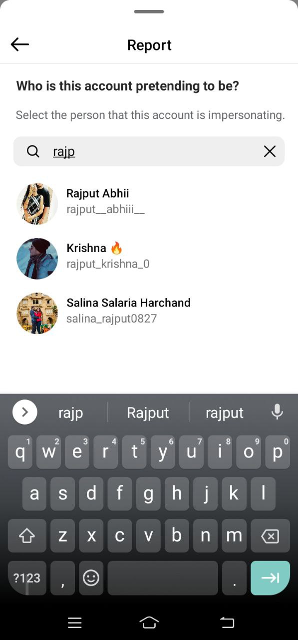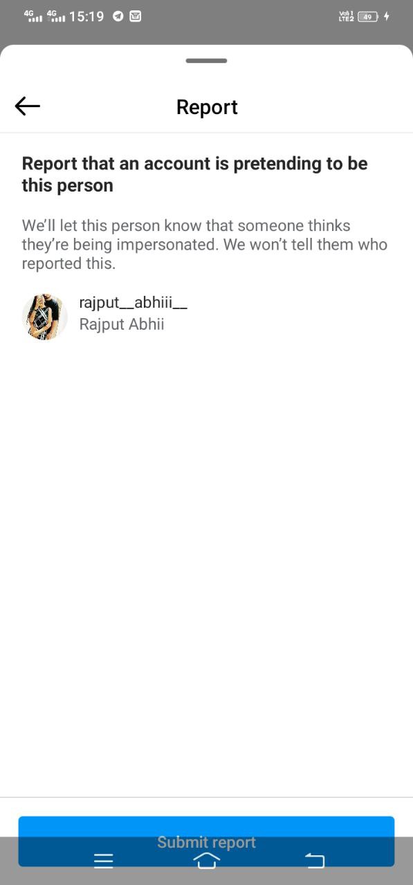 - Choose the relevant option as per your understanding. Once you select any of the options (except ‘Me’), then perform a search on username you want to report. Then tap on ‘Submit report’ on tapping searched username.