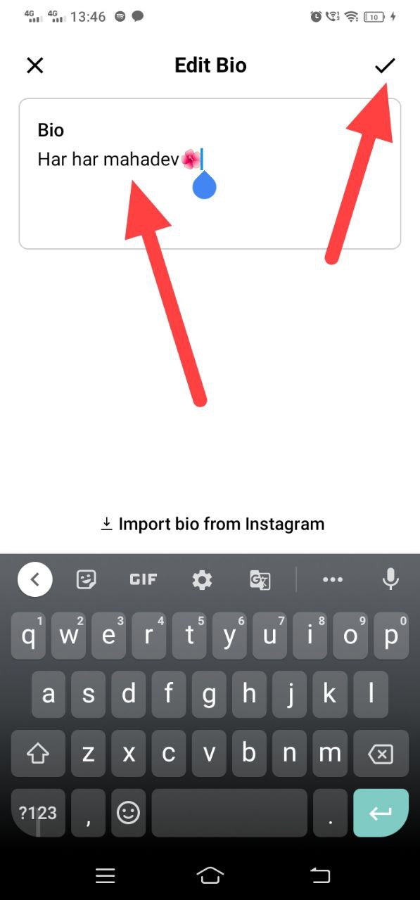 - Then select either ‘Bio,’ ‘Link,’ or both, depending on your preferences for updating, after that tap on click icon in the upper right corner after making your updates.