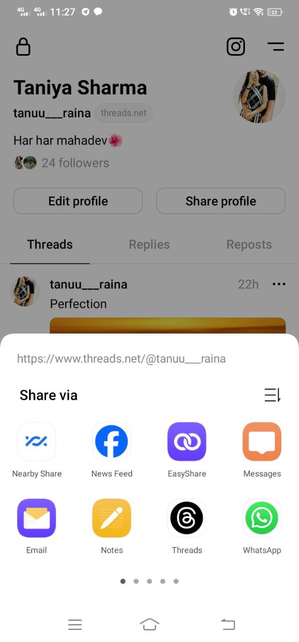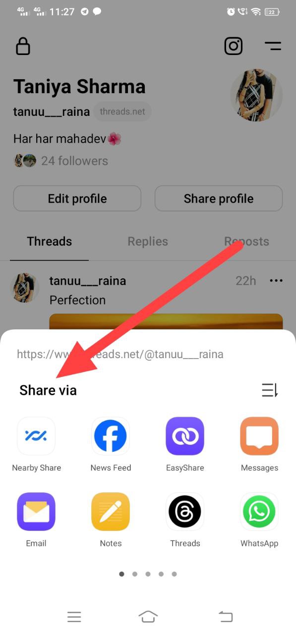 Lastly, you can select the app of your choice for sharing this Threads profile with another person. Once selected, simply tap on the chosen app to send the Threads profile.