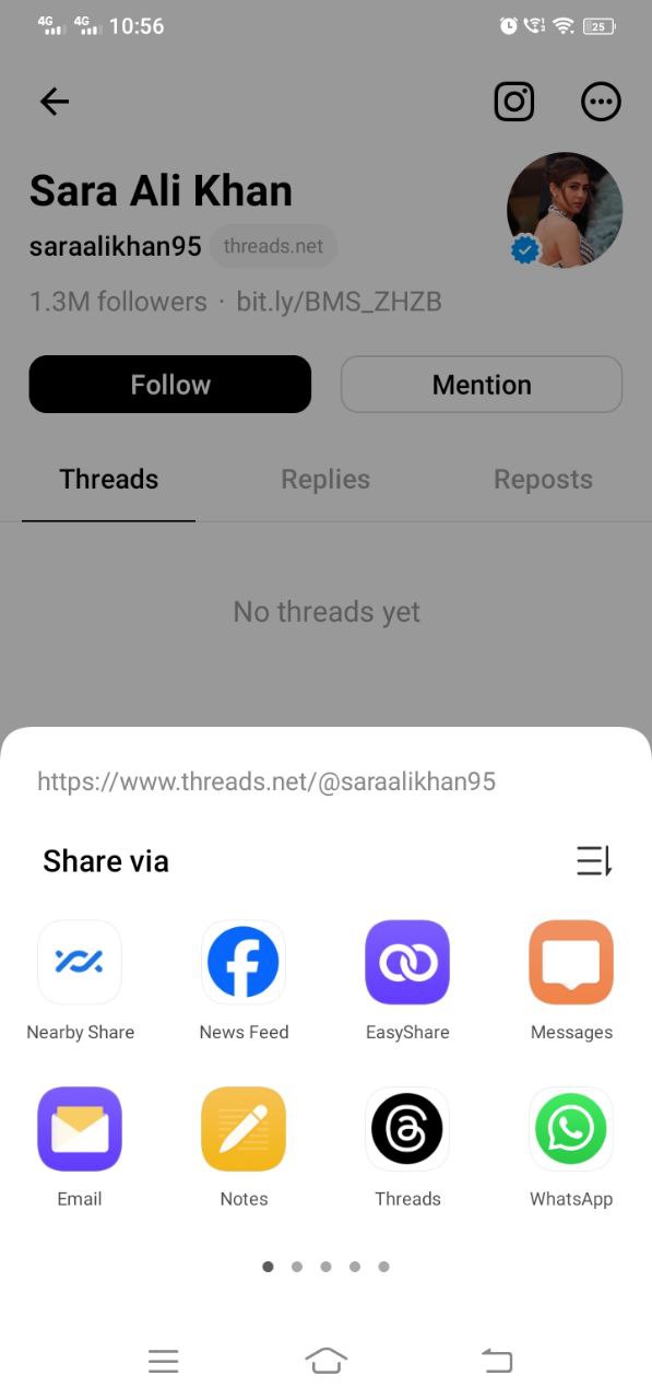 This way you can effortlessly share either your own profile or someone else’s profile with another person using the Threads app.
