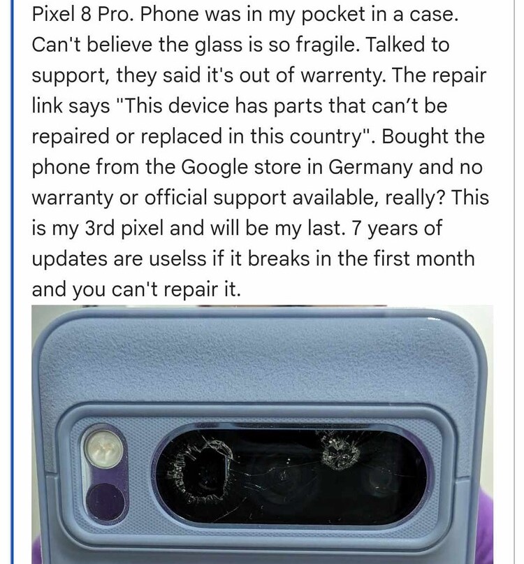 Unfortunately, in recent weeks, reports have begun to emerge about the rear camera glass shattering for some Pixel 8 users as well. Some of those affected claim that the problem appeared out of nowhere, even after handling their devices with extreme care and avoiding dropping them on the ground.