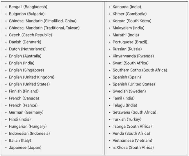 Following this update, users can now transcribe in an additional 28 languages using the Recorder app. These languages are accessible on Google Pixel Fold, Pixel Tablet, Pixel 6, and newer models. While Google hasn’t disclosed the complete list of newly supported languages, users can check out for the comprehensive list below to explore the expanded language options.