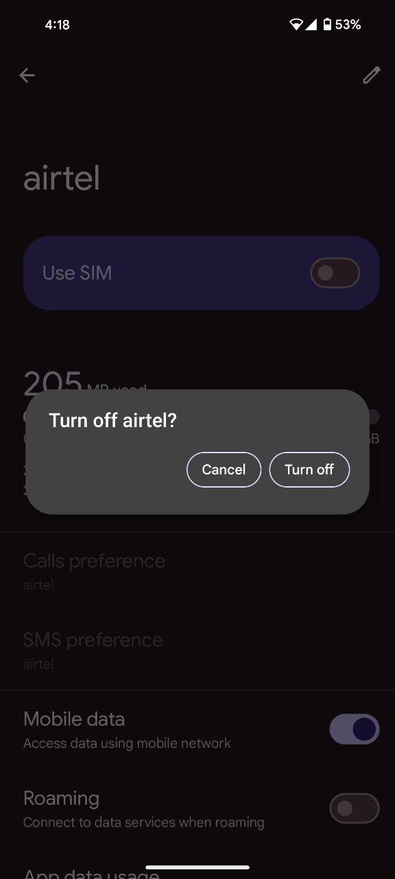 - Slide the ‘Use SIM’ toggle to the left and disable the SIM card.