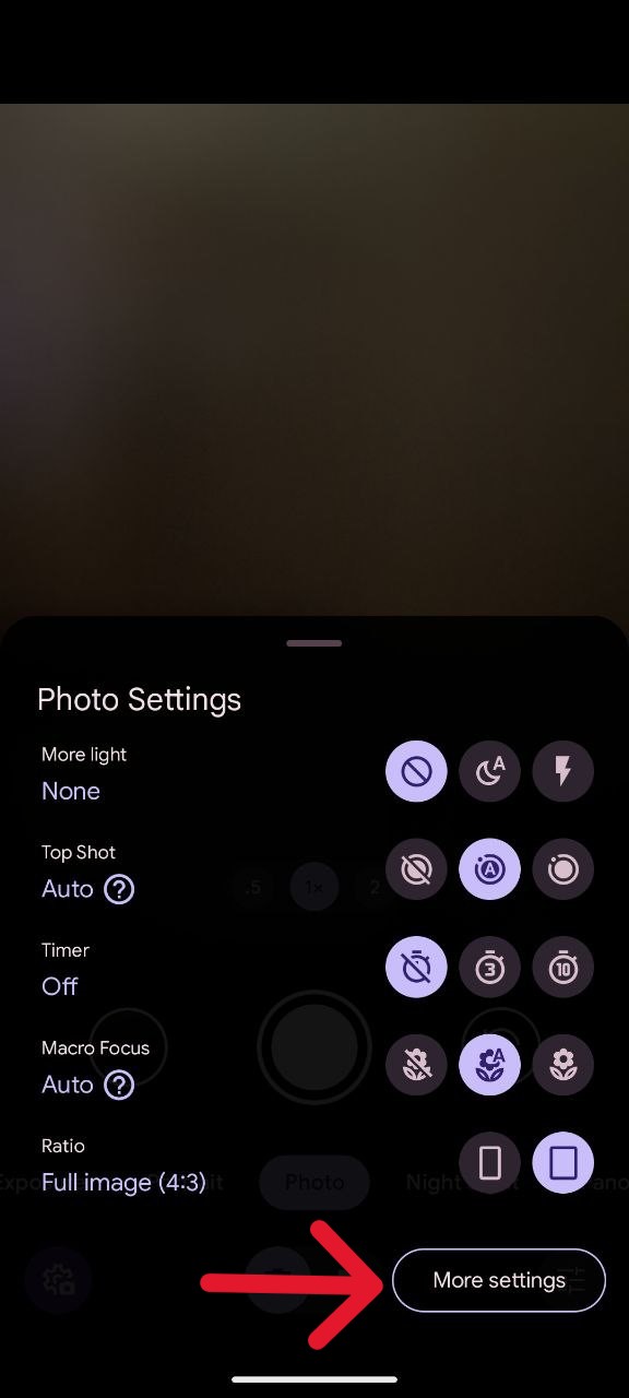 - Within the Camera Settings, tap on ‘More settings’.