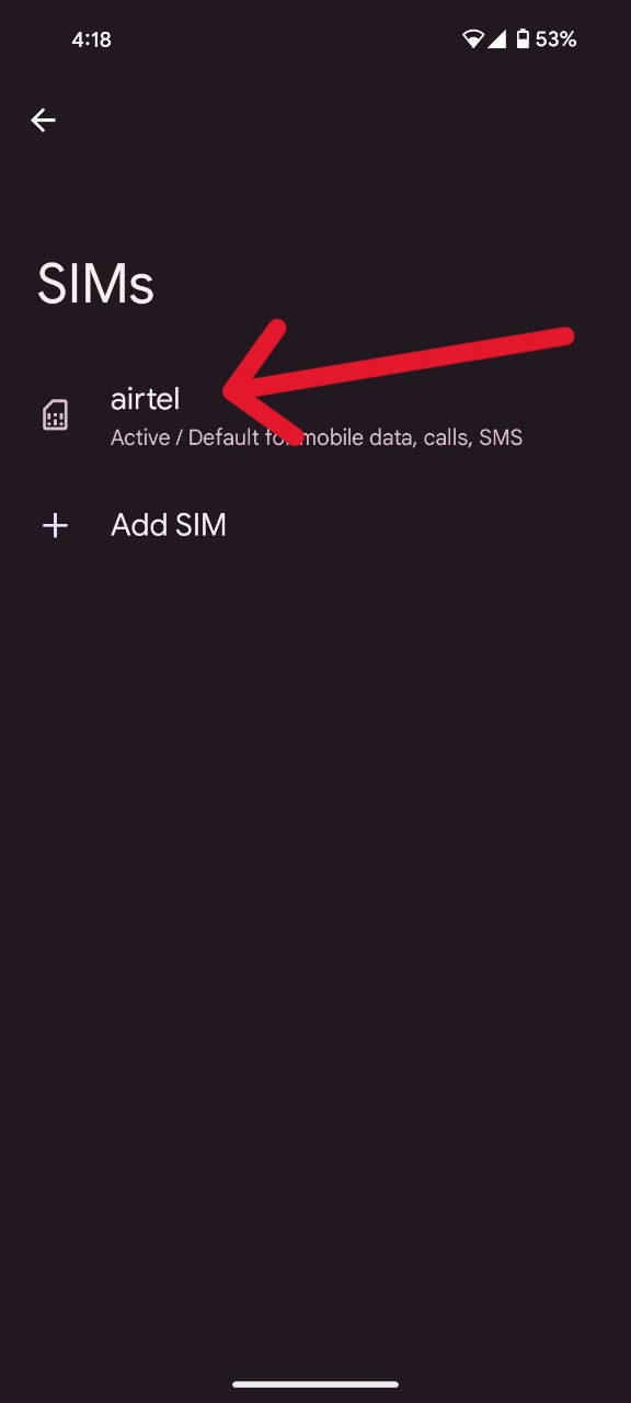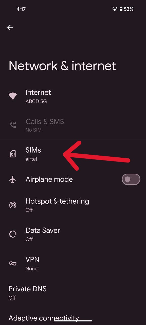 - Now tap on the ‘SIMs’ option.