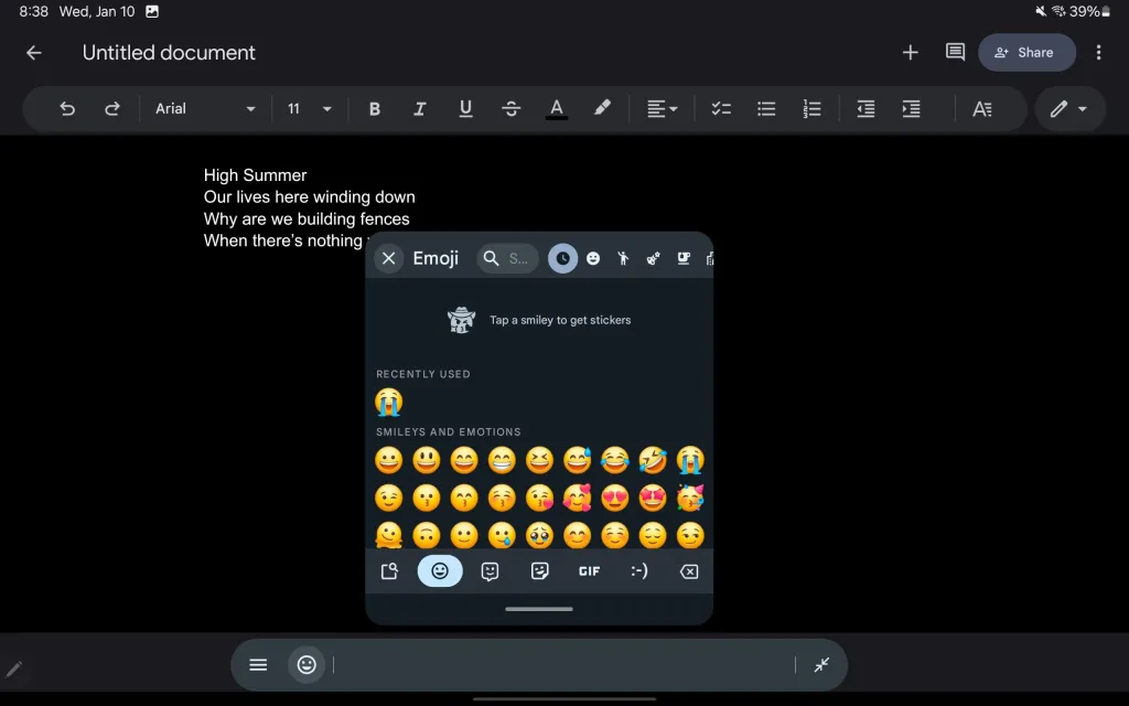 The toolbar packs a punch of useful features. Want to quickly access emojis? Tap the dedicated button next to the suggestions, and a familiar phone-sized emoji picker pops up. Feeling multilingual? The overflow menu grants instant access to Gboard’s translate magic. Need to paste something from your clipboard? The overflow menu has your back.