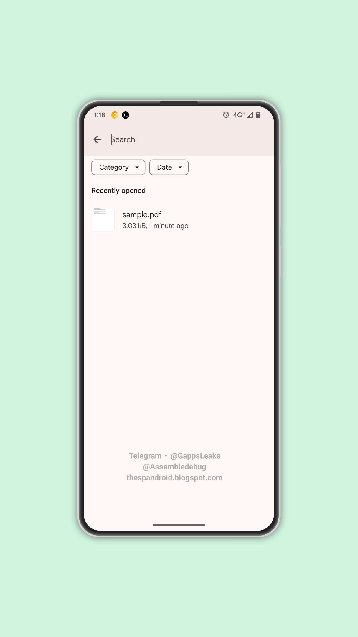 Category: Here you’ll get to choose the file type that you wish to search for. Tapping on it will bring up the following options: Images, Videos, Audio, Documents & other.
