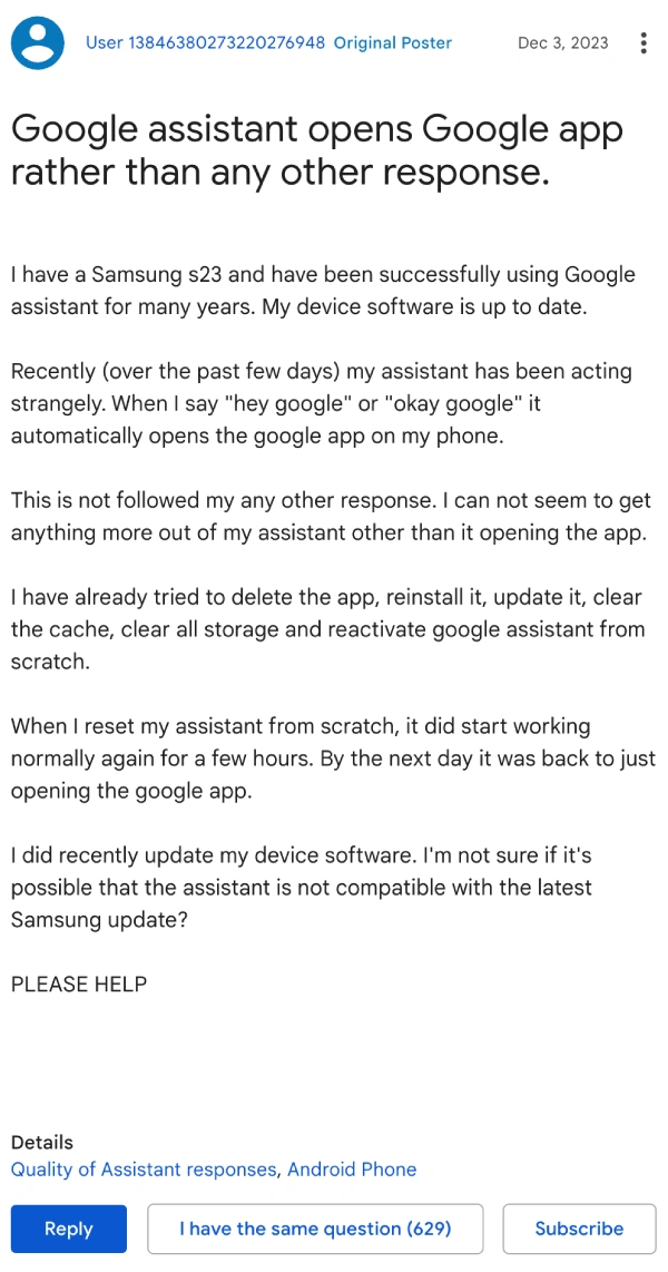 According to reports on Google’s official support forum and Reddit, users with a range of smartphones are claiming that they can’t get Google Assistant to work with the ‘Hey Google’ hotword. The main thread has a considerable 629 votes from users claiming to be affected by the issue.
