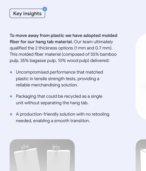 By doing this, Google managed to replace plastic laminations with recyclable coatings that offer similar protection and visual appeal. They ditched shrink wrap in favor of clever structural design changes and specialized adhesives. They even swapped plastic hang tabs for molded fiber ones, ensuring both strength and recyclability.