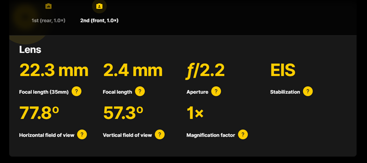 This camera will feature f/1.7 aperture, OIS+EIS, a focal length of 25.5mm, and 70.5º field of view. There are no details of the type of sensor and physical size, but the listing points to a sensor area of 30.7mm2.