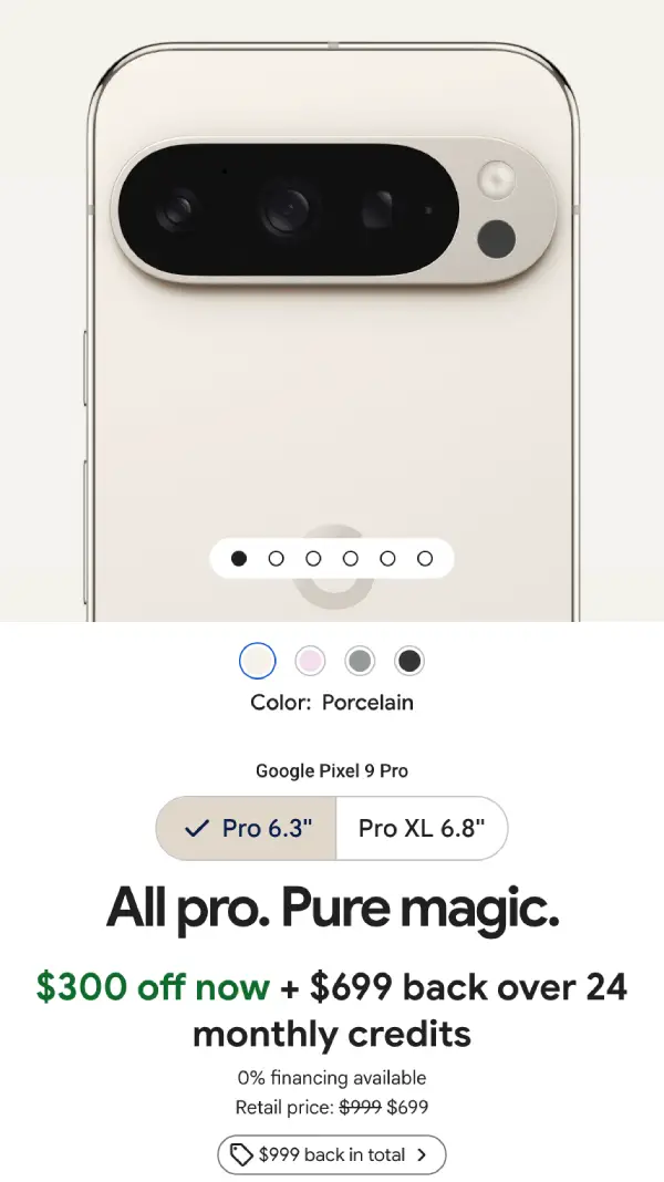For those new to Google Fi, claiming this specific anniversary perk involves a combination of immediate savings and credits over time. When you purchase the Pixel 9 Pro as a new Google Fi customer, you’ll receive $300 off the price right away. The remaining $699 of the phone’s cost will be applied back to your account in the form of bill credits spread out over 24 months.