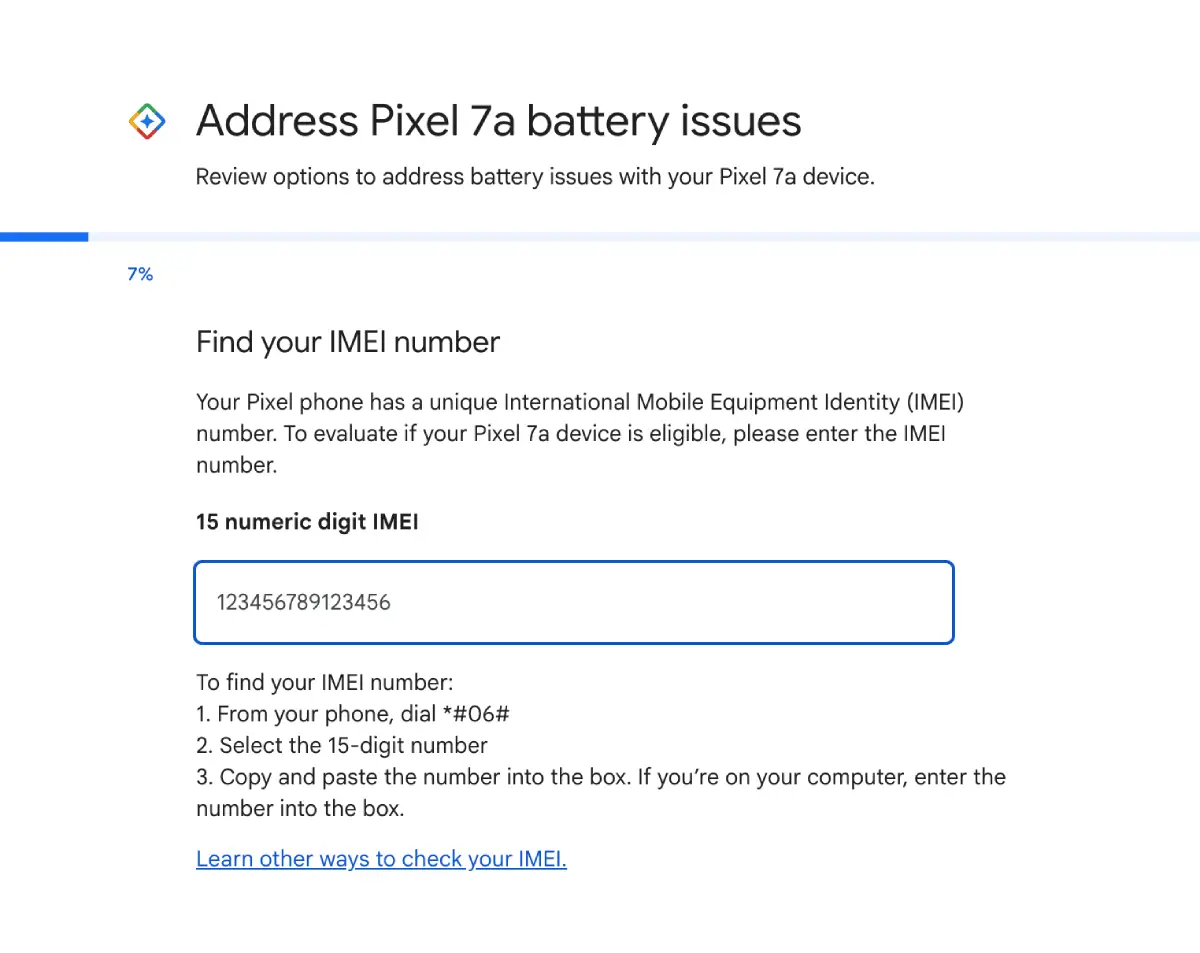 Not every Pixel 7a is affected, however. Google has set up a dedicated registration page where you can check if your specific phone is eligible. You’ll need your phone’s IMEI number to see if you qualify for the program.