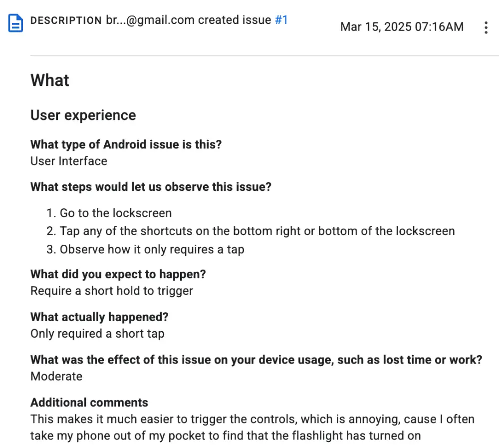 This immediate activation is leading to some frustration among those testing the beta. Some are reporting unintended triggers simply by handling their phone or taking it out of their pocket. One user on Reddit, u/azure1503, mentioned, “I was wondering why my flashlight was turning on while in my pocket”. Another user, u/World_Motor_Stopper, described the situation as “From butt dialing to pocket lighting”. They added that this behavior was occurring on both their Pixel 9 Pro XL and a backup Pixel 8 Pro, both running Android 16 Beta 4. This unintended activation can be quite annoying and disruptive.