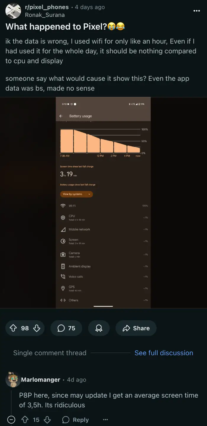 It’s not just one specific Pixel model affected either. While details are still emerging, users with various devices, including the Pixel 8 Pro and Pixel 7, have voiced concerns. One Pixel 8 Pro owner noted getting only about 3.5 hours of screen time on average, which is pretty unexcusable for a flagship.