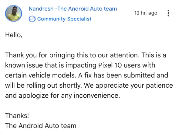 And just to round things off, a bug with Android Auto has already been confirmed in the media, not just in user reports. For some, the Pixel 10 flat-out refuses to cooperate with their car’s infotainment system — causing freezing, disconnects, or simply not working at all. Google’s own support forums acknowledge this, so it’s not just a couple of isolated cases. That said, a fix for the issues will be rolling out shortly. Keep an eye out for any updates.