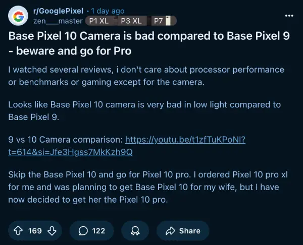 But it’s not just the standard Pixel 10 catching strays. One user is apparently returning their Pixel 10 Pro because the photos and videos “are shockingly bad.”