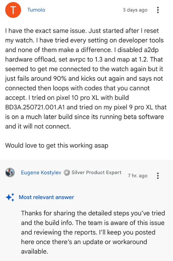 Update 03/09/25 – 10:30 am (IST): A product expert on Google’s support forums has confirmed that the team is aware of issues people are facing when pairing their Galaxy watches with the Pixel 10. Unfortunately, there’s no official workaround yet, and no ETA has been provided for a fix.