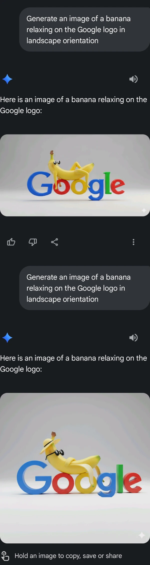 Check the screenshot below for reference. The first image was generated without the Banana Image option, while the second image, with the same prompt, was generated using the Banana Image option.