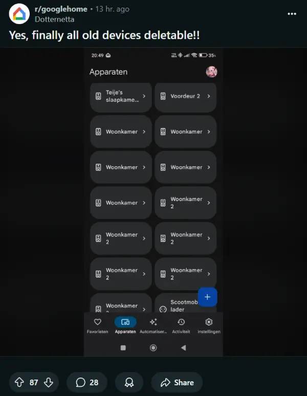 Reactions on the Google Home subreddit reveal just how much frustration this issue caused. One user celebrated finally removing Harman Kardon speakers that failed years ago, while others mentioned deleting Nest doorbells stuck in failed setup states and Philips Hue devices that became impossible to unlink after removing the bridge.