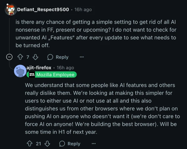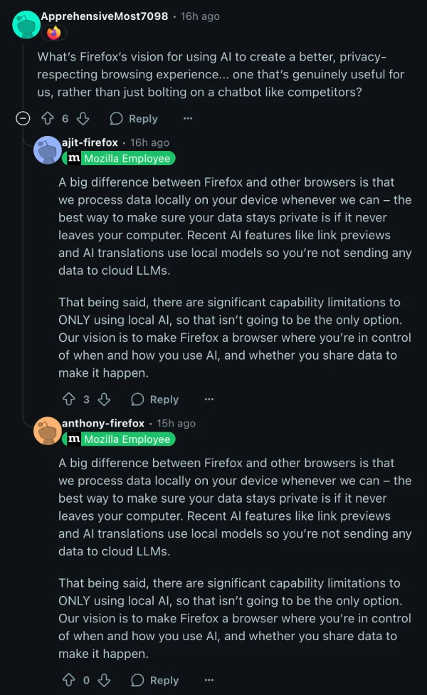 That was pretty much all the important details shared in the AMA. In short, Firefox is doubling down on user choice and privacy while working on practical improvements like split-screen views, better dark mode options, and smoother cross-platform experiences. The team seems genuine about not forcing AI on users who don’t want it, and they’re actively working on interface updates that have been a long time coming.