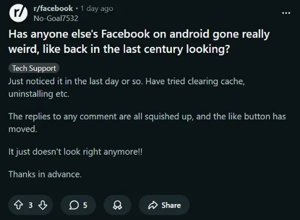 Take Android users, for starters. One person on Reddit kicked off a discussion saying their app had gone “really weird,” like something out of the last century. The comments are all jammed together, the like button’s been relocated, and it just doesn’t sit right.