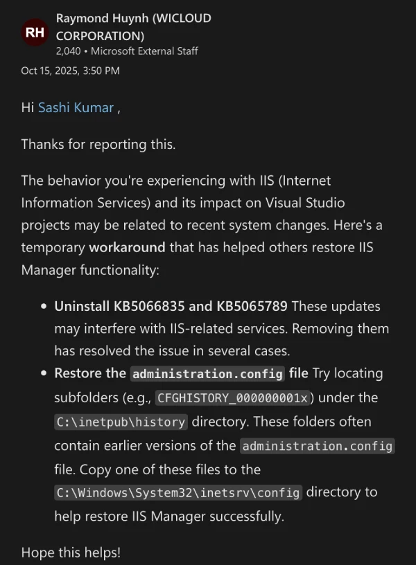 If your computer’s local web setup stopped working right after installing a recent Windows 11 security patch, know that plenty of others are in the same boat. This KB5066835 update, which came out as part of Microsoft’s October fixes, has caused problems for developers and system admins who rely on IIS to run sites on their own machines.