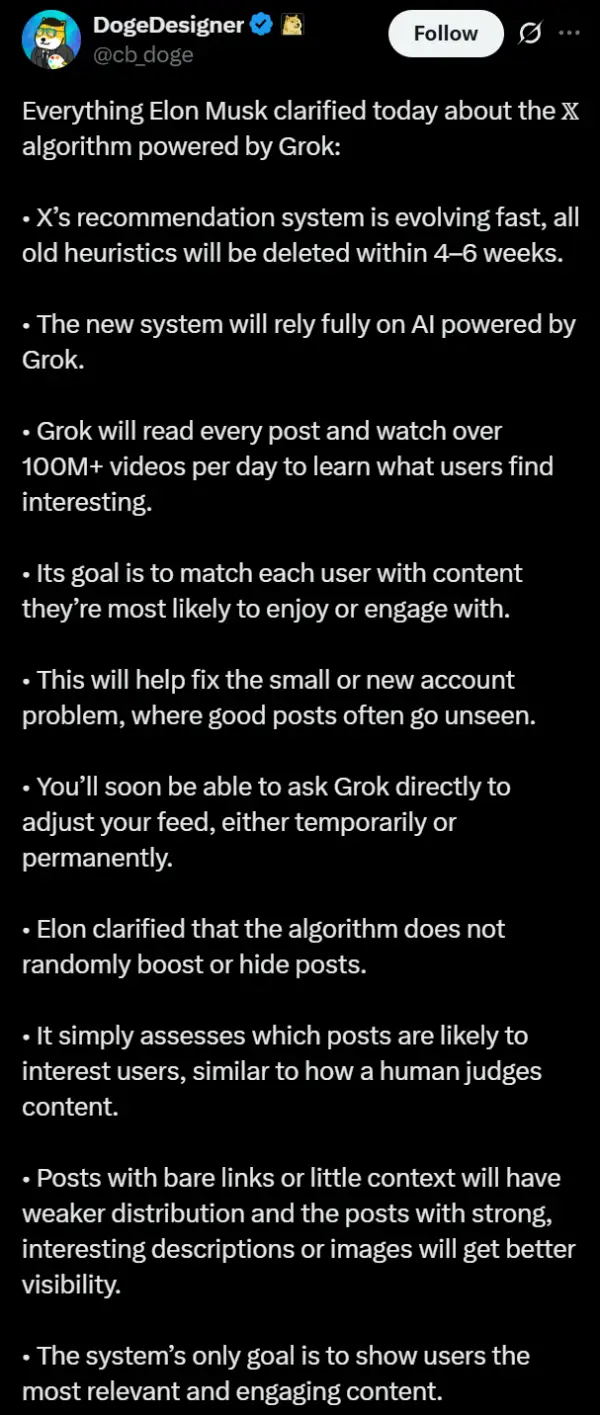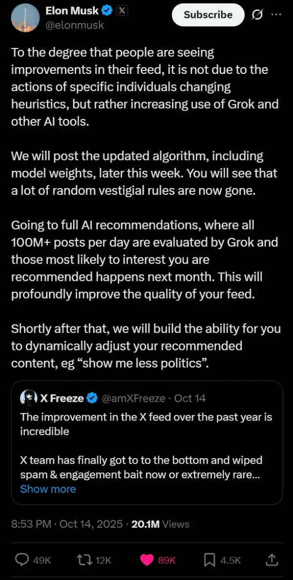 For anyone who’s ever felt invisible on the platform — newbies or small accounts especially — this could be a real breakthrough. Musk highlighted how great posts often flop because they don’t get initial traction. With Grok in charge, those overlooked gems should surface more easily, giving everyone a fairer shot at visibility. And the personalization doesn’t stop there; soon, you’ll be able to tweak your feed directly by chatting with Grok.