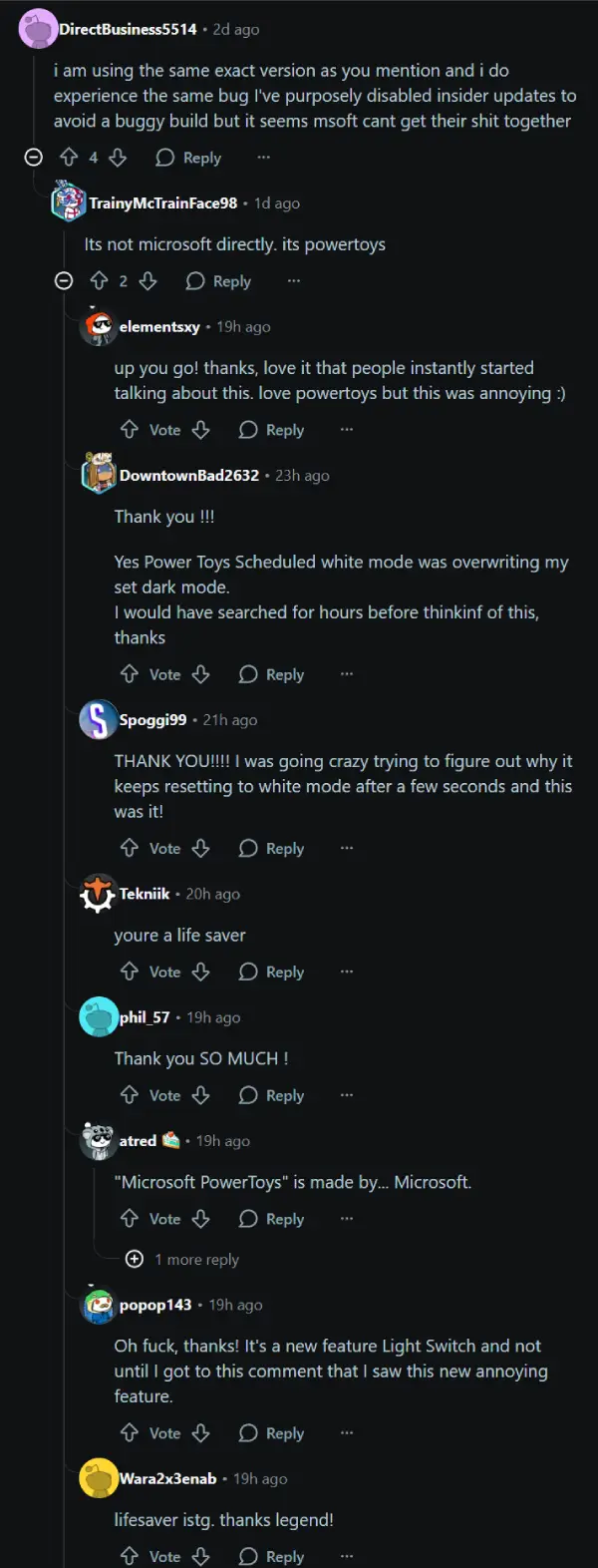 Another thread shows someone on build 26200.6899 dealing with the same headache, while Windows 10 users are also seeing theme switches happening automatically. Some wondered if Microsoft was deliberately breaking things to push people toward upgrading.